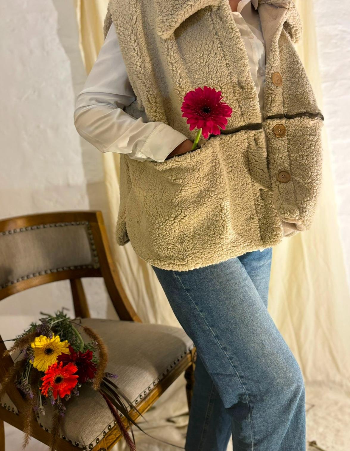 Chaleco Enya CategoríasREINA MADRE Chaleco Enya$4.290 Chaleco Enya, confeccionado en corderito, interior de polar, botones en madera, apliques en cuero y tercipelo, confeccionado totalmente a mano. Chaleco Enya cantidad Comprar ahora Categoría: REINA MADRE Productos relacionados Camisa Fiori $2.190 Seleccionar opciones TABLA DE TALLES GENERAL $0 Añadir al carrito MANTONES ALGODON Y LANA $790 Seleccionar opciones Camisas Retro $2.690 Seleccionar opciones